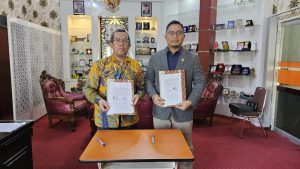 Foto bersama setelah penandatanganan Memorandum of Understanding  (MoU) terkait pemasangan SPLU dan SPLU antara Dekan Fakultas Keguruan dan Ilmu Pendidikan (FKIP), Dr Ahmad Yani T, M.Pd. ((kiri) dan Manager PLN UP3 Pontianak, Sigit Hari Wibowo (kanan) (08/09).FOTODOKPLN